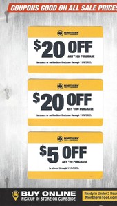 Northern Tool Coupons - $20 OFF in November 2022 Spend $100+ and Enjoy $20 Off Orders with This Northern Tool Discount Code. Verified. Retailer website will open in a new tab. 77. See code. Expiration date: December 31. $20. OFF. Northern Tool Official Coupon Codes | Northern Tool Plus, Get Exclusive Member Savings ALL YEAR LONG!*. For over 30 years, family owned and operated Northern Tool has been an innovator in the tool and equipment space to help you tackle tough challenges at affordable prices. Shop our on sale section to find all of the products on sale on our site in one place. If you are looking for even deeper ...
